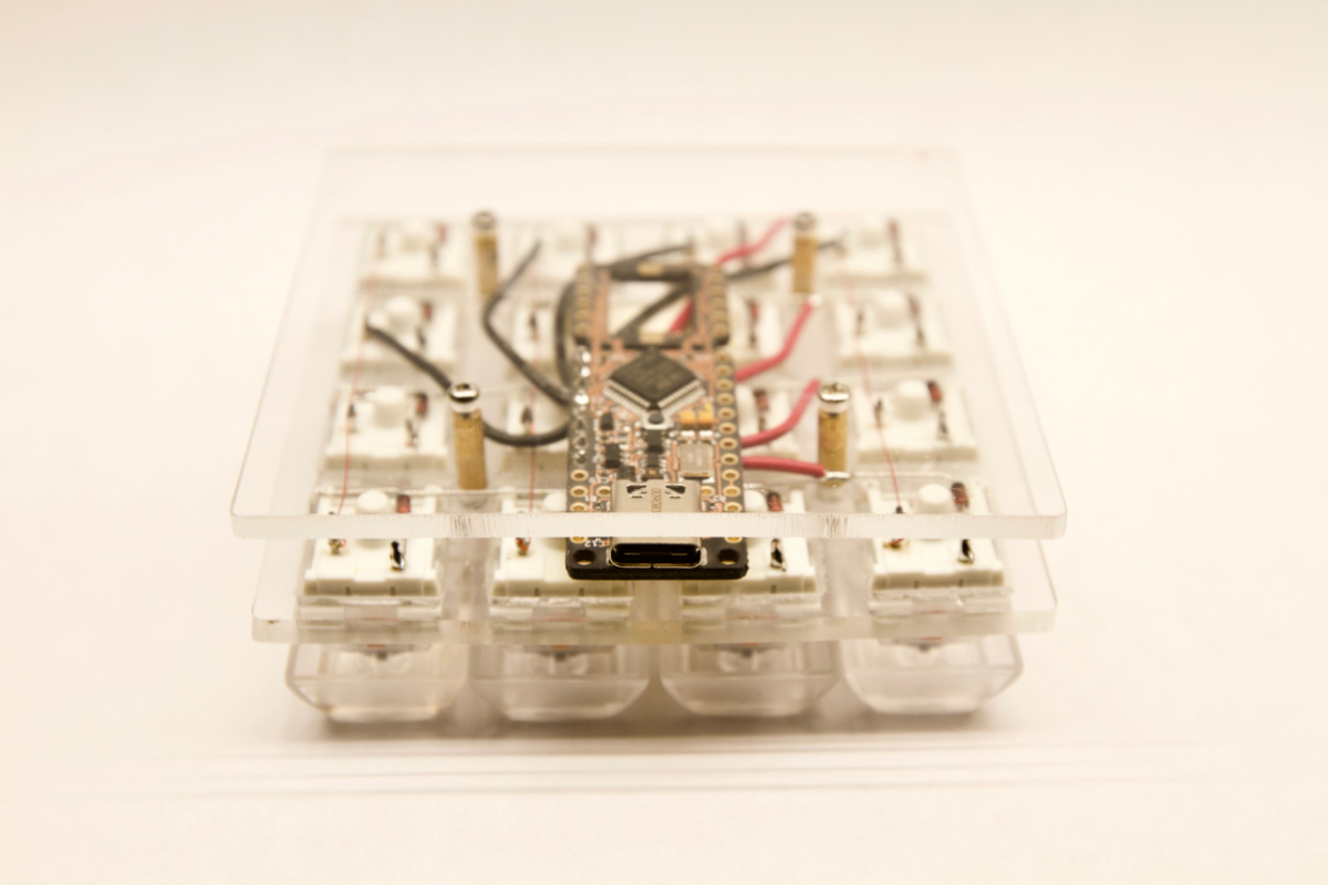 NOTE: This layer will only make sounds if you install a speaker. At the time of this writing, you can get the Proton C specific piezo speaker for $2.61 with free overnight shipping. You can solder it on by desoldering the row wires where they contact the cathode end of the diodes. Then flip over the Proton C and solder the piezo speaker in. Then re-solder the row wires and you should hear beeps and boops the next time you plug in your keyboard.